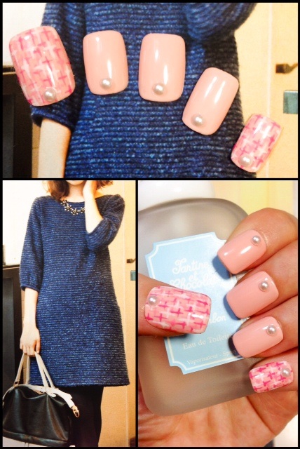 添付はツイード柄ネイルです。冬にぴったりの暖かいネイルになりました♪