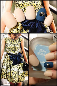 添付はベージュとネイビーを使ったパーティーネイルです。マットコートで暖かい印象と、小さいストーンで控えめな華やかさを演出です♪