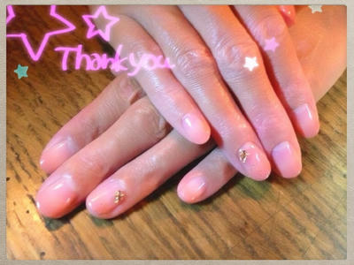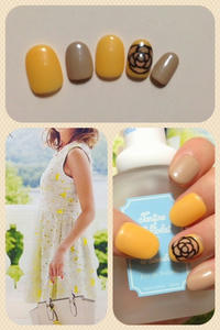 添付はオフィスネイルです。オレンジとベージュに、ポイントでカメリア模様を入れました♪