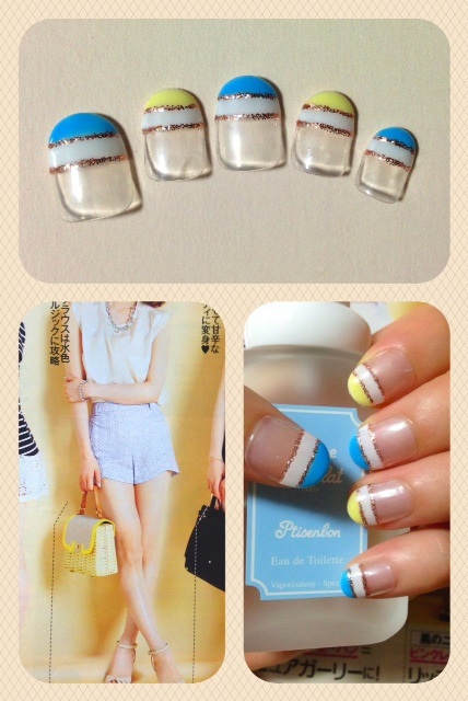 添付は浴衣用に作ったネイルです。ふんわりグラデーションにヨーヨー風アートをしてみました♪