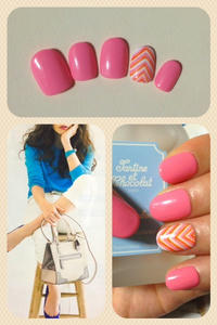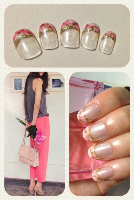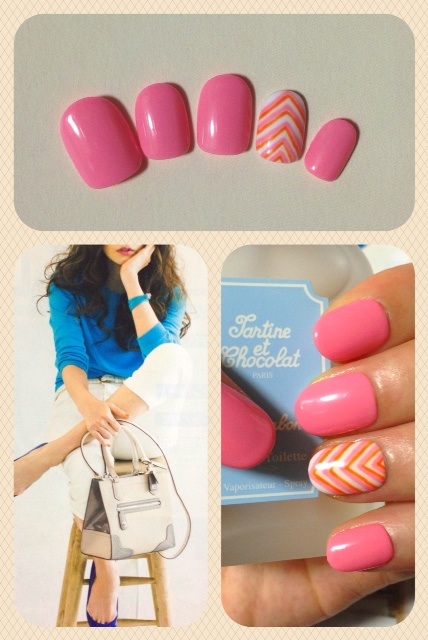 添付はアレンジボーダーネイルです。三角で指長を狙いますp(^_^)q