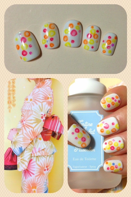 添付は浴衣用に作ったネイルです。たらしこみアートをしてみました。水風船のようなほわっとしたネイルが出来上がりました♪