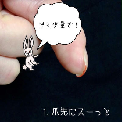 マニキュアのボトルでハケをクルクル回してごく少量のマニキュア液を取ります。そして爪の先端に塗りましょう。これをすることで爪の先端から剥がれてくるのを防ぎます!