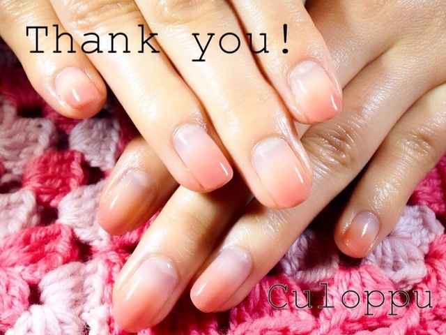 今日はお客さまネイルです。オレンジベージュのシンプルグラデーションです♪手もお爪もとてもキレイなお客さまです(*^_^*)Sさま、ありがとうございました!