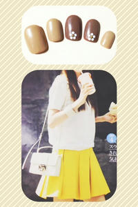 添付はオフィスネイルです。ブラウンでまとめてみました♪濃い方には白いホログラムでお花を作って濃くなりすぎないよう調節してみました。