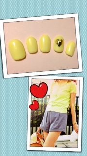 添付はオフィスネイルです。レモンイエローの一色塗りにゴールドのホログラムでハートを作ってみましたo(`ω´ )o