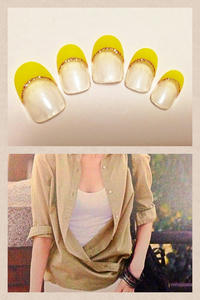 添付はオフィスネイルです。今日はネイルに合いそうなお洋服と一緒に♪シンプルなイエローフレンチにしてみました。