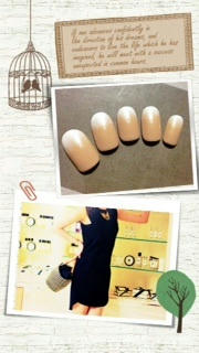 添付はパーティーネイルです。ベージュとホワイトのグラデーションでドレスが目立つようにしてみました。