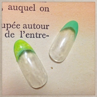 添付はオフィスネイルです。オフィスにグリーンはどうかな?ということでパステルグリーンのフレンチにしてみました。
