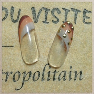 添付はお客さまネイルです。ブラウンのグラデーションとポイントにフレンチをいれました。掲載を快諾してくださったHさま、ありがとうございました!