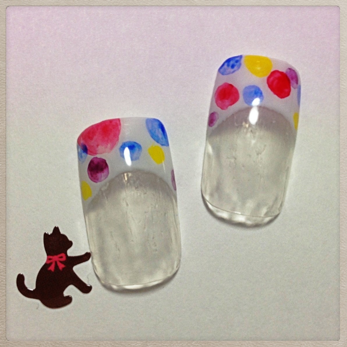 添付はオフィスネイルです。今流行りのたらしこみネイルをしてみました。絵の具がふわあ〜と滲むようなアートです。ポイントにいれるといいかな〜と思います。