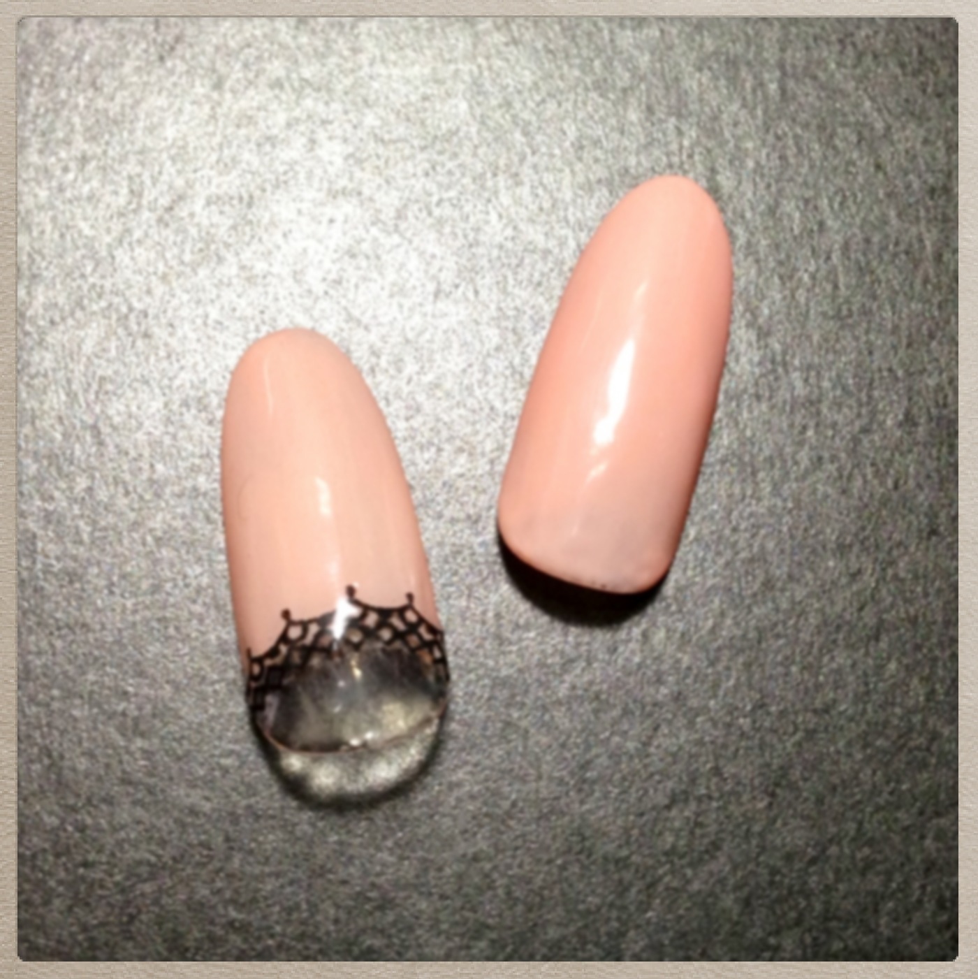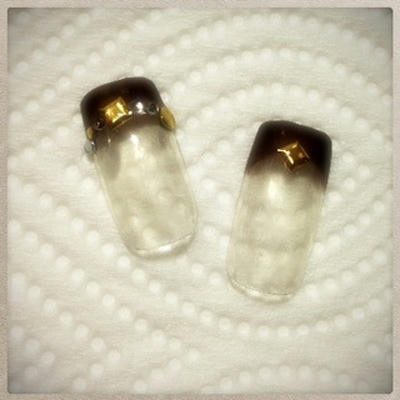 添付はパーティーネイルです。ダークブラウンのフレンチでオトナな感じを目指しました。