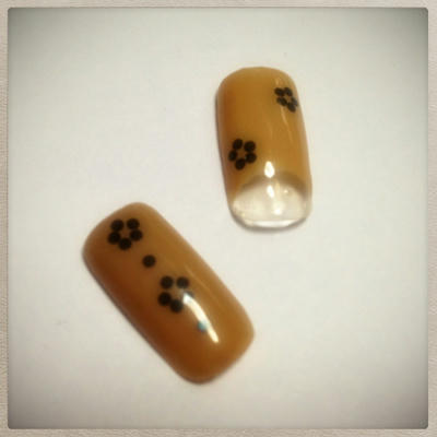 添付はオフィスネイルです。ホログラムで花を作りました。春に向けたネイルを思案中です。