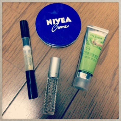 今日の添付は私のハンドケアグッズをご紹介。ハンドクリーム二つに化粧水、キューティクルオイルペンです。まず化粧水をシュッと一拭き、そしてハンドクリームを塗ります。先に化粧水を塗るとサッパリしますし伸びもいいのでオススメです。そして最後に甘皮をキューティクルオイルで保湿。これはペンタイプなのでとても塗りやすいのです。顔に化粧水を塗るのはよく忘れるくせに、手だけはいっちょまえに大切にしています。