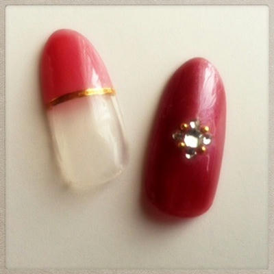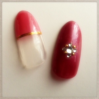 添付はパーティーネイルです。ストーンを規則的に並べてひとつの宝石のようにしてみました。