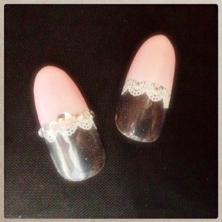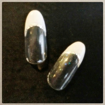添付はパーティーネイルです。まっすぐフレンチにラインシールとストーンでアート。ストーンがなければオフィスにもオススメですね。