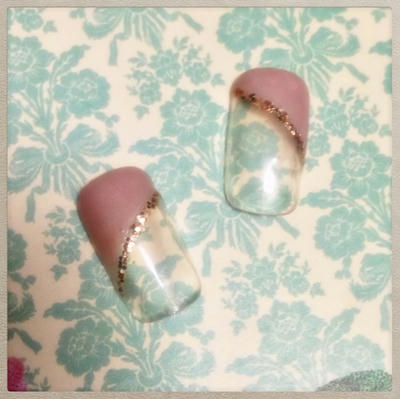 添付はベージュの斜めフレンチです。パールホワイトを混ぜて上品さを目指しました。