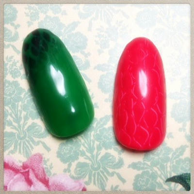 添付は見えにくいですがヘビ柄ネイルです。もっと本格的なヘビ柄を表現してみたいのですが…。模索中です。