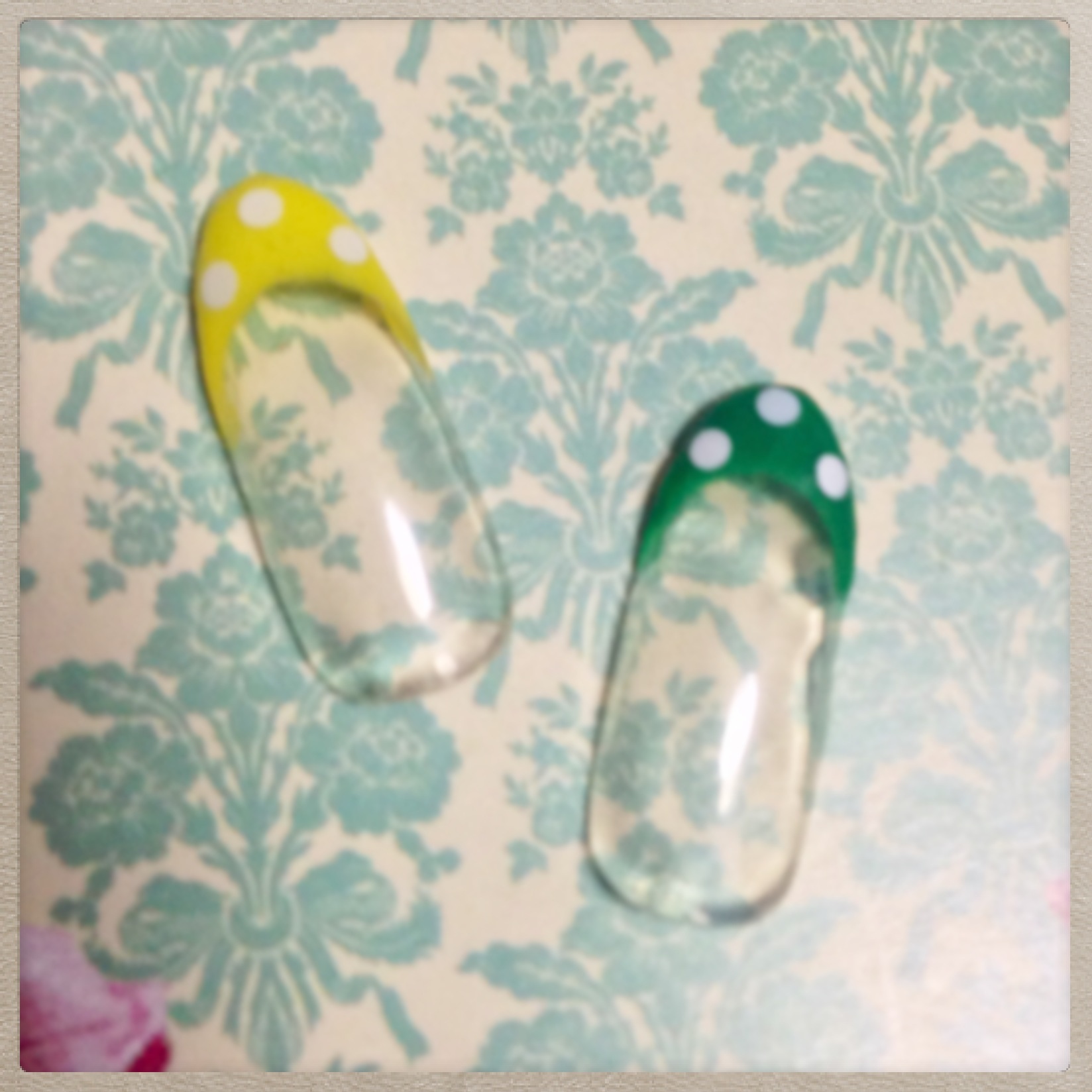 添付はイエローとグリーンのフレンチネイルです。ドットをいれてポップな感じです。
