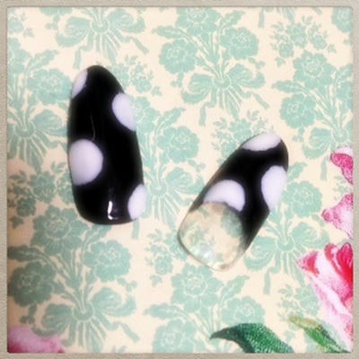 添付は大きめドットネイルです。小さめだと可愛らしいですが、大きめだとよりポップな感じです。