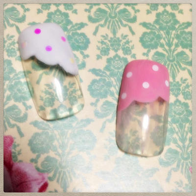 添付はもこもこフレンチにホロでドットを作りました。アイスみたいです(*^_^*)