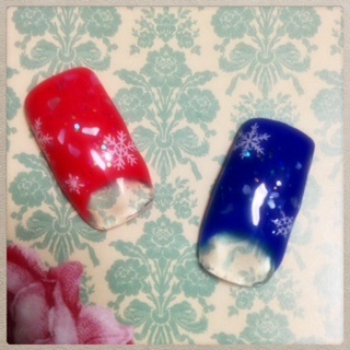 添付は雪の結晶ネイルです。グリッターやシェルですこしキラキラに。