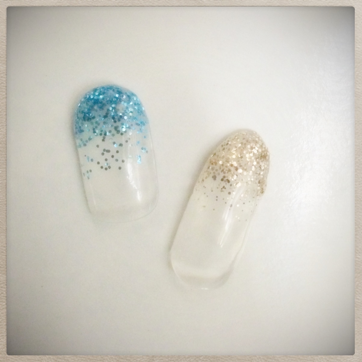 添付はラメグラデーションネイルです。派手に華やかに。目標です。