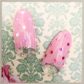 添付は逆フレンチにホログラムでドット柄を作りました。飴ちゃんみたいです。