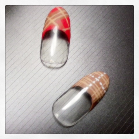 添付はツイード柄とチェック柄ネイル。寒くなってきましたので指先も暖かくしてみるのはいかがでしょうか。